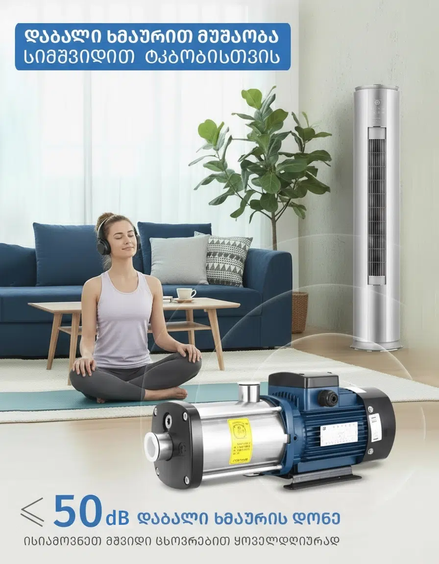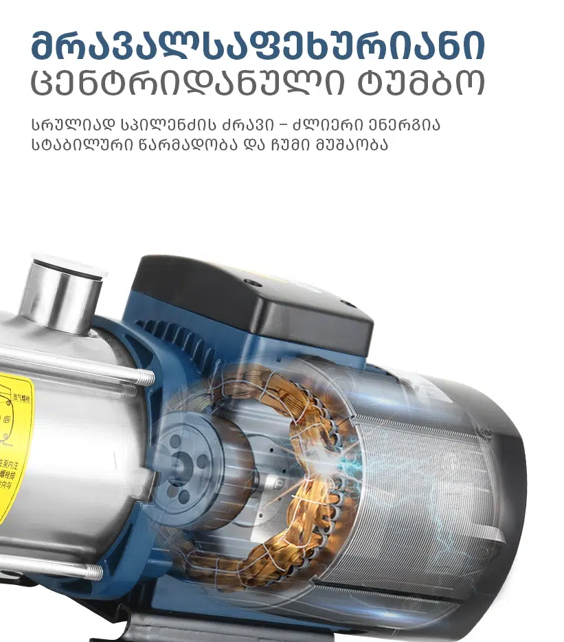 მრავალსაფეხურიანი ცენტრიდანული ტუმბო, სრულიად სპილენძის ძრავით – უზრუნველყოფს ენერგიის სტაბილურ გადაცემას, შედეგად მისი მუშაობა უფრო ჩუმი და ეფექტურია.