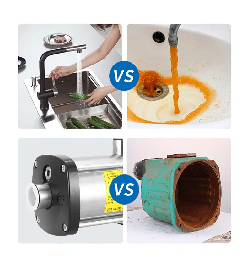 შედარებით ჩვეულებრივ ფოლადის ტუმბოებთან, უჟანგავი ფოლადის მოდელი არ იჟანგება და არ აბინძურებს წყალს, რაც განსაკუთრებით მნიშვნელოვანია სასმელი წყლის, საკვები ინდუსტრიისა და საყოფაცხოვრებო სისტემებისთვის.
