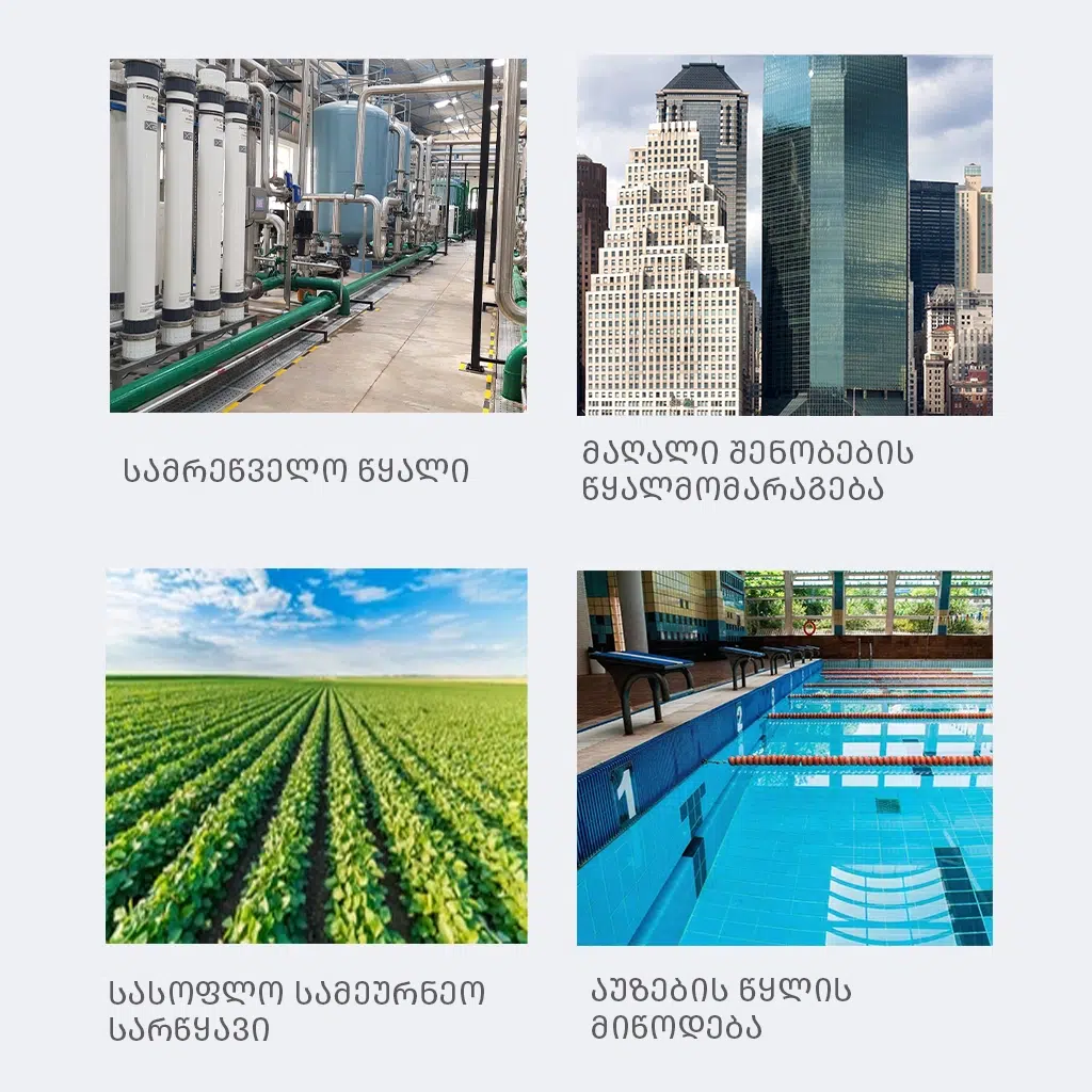 - წყლის ფილტრაცია და გადატუმბვა წყალმომარაგების სიტმებში