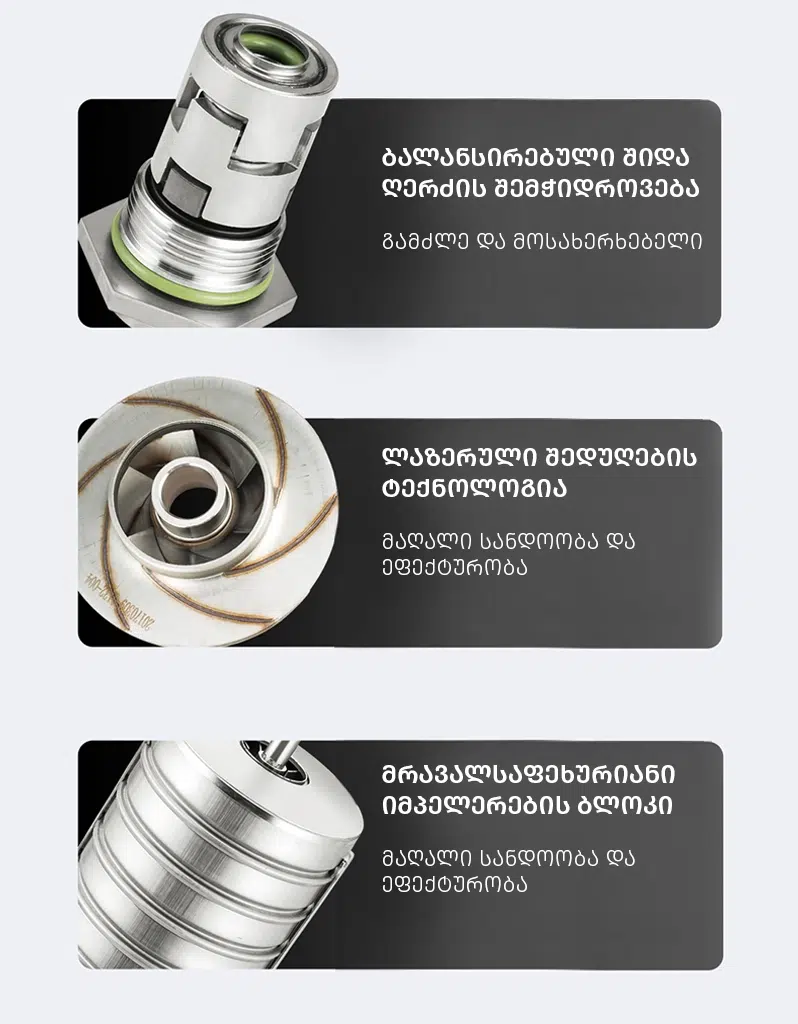 · ტუმბო გამოირჩევა მაღალი ენერგოეფექტურობით